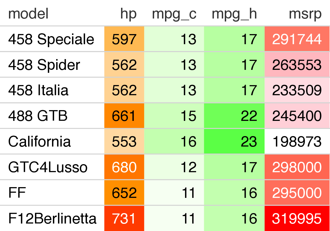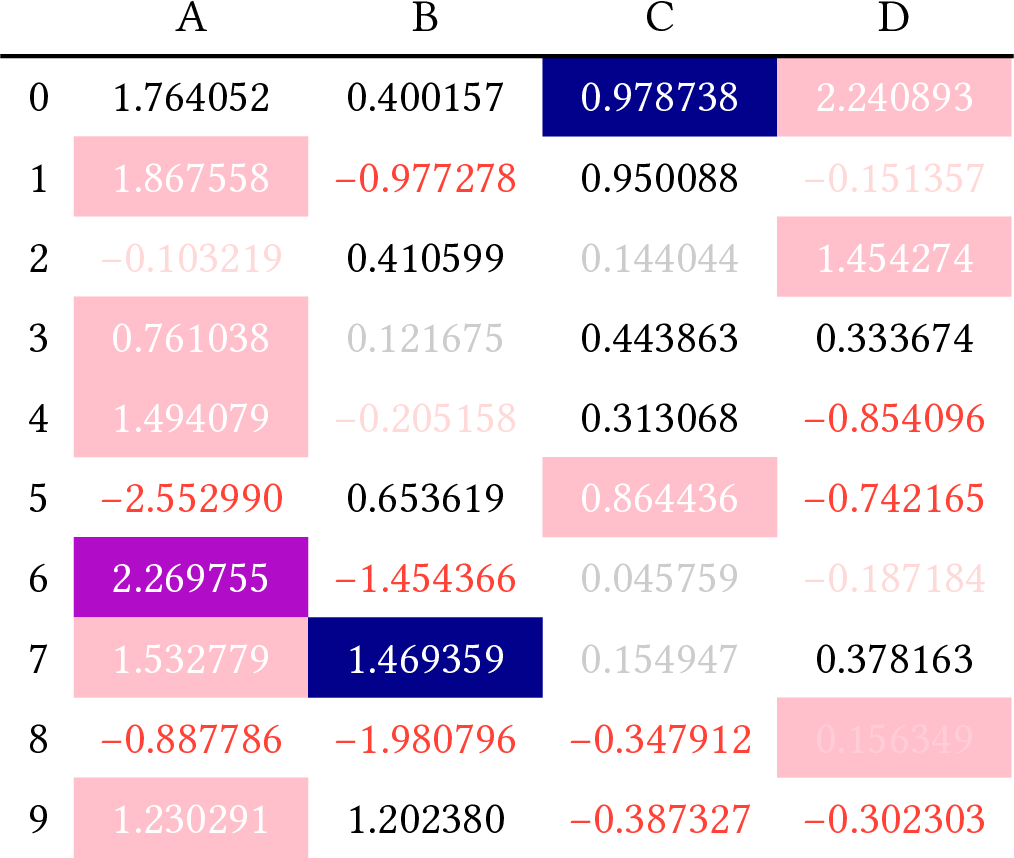 Let’s look at 6 HTML tables using a variety of CSS properties also supported by Typst in Quarto.